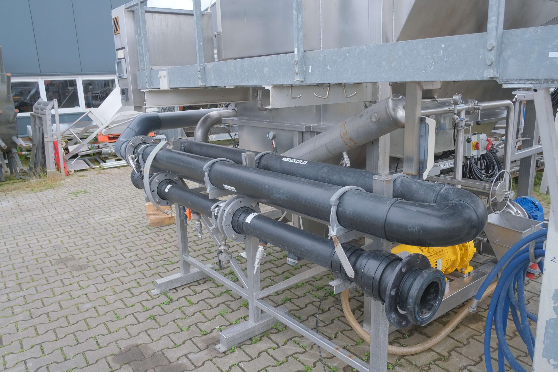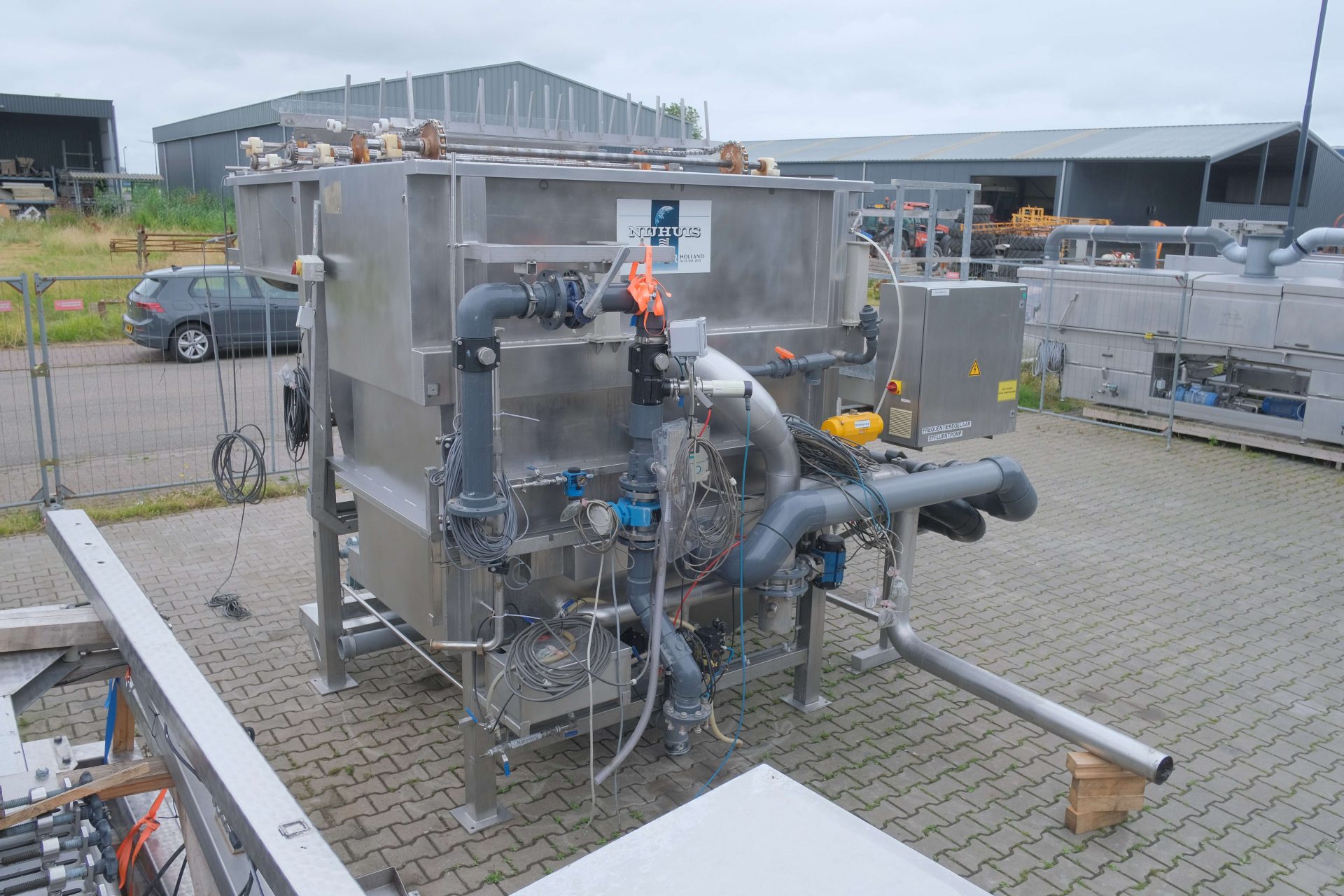 The DAF unit comes fully equipped with essential components for a complete wastewater treatment. It includes recirculation pumps, a sludge pump, a flocculator and a scraper/skimmer. Additionally, the unit is fitted with electrical panels, an Efcon cabinet, a pH meter, a flowmeter and a boiler, providing a complete solution for efficient operation.