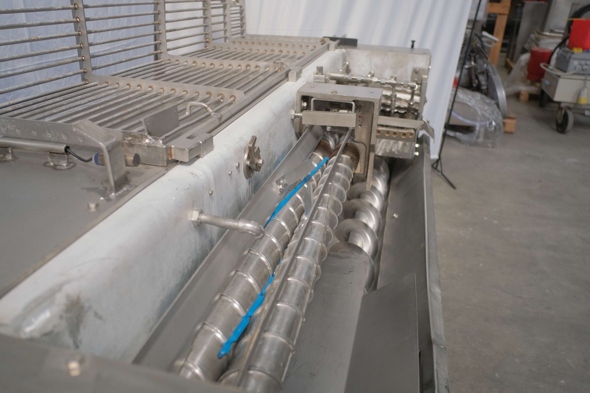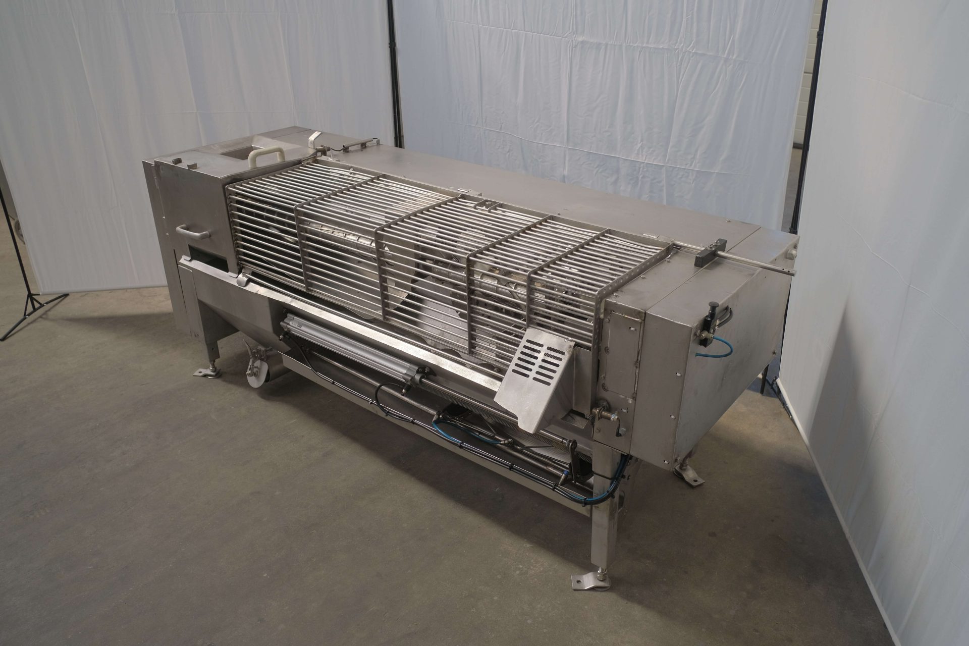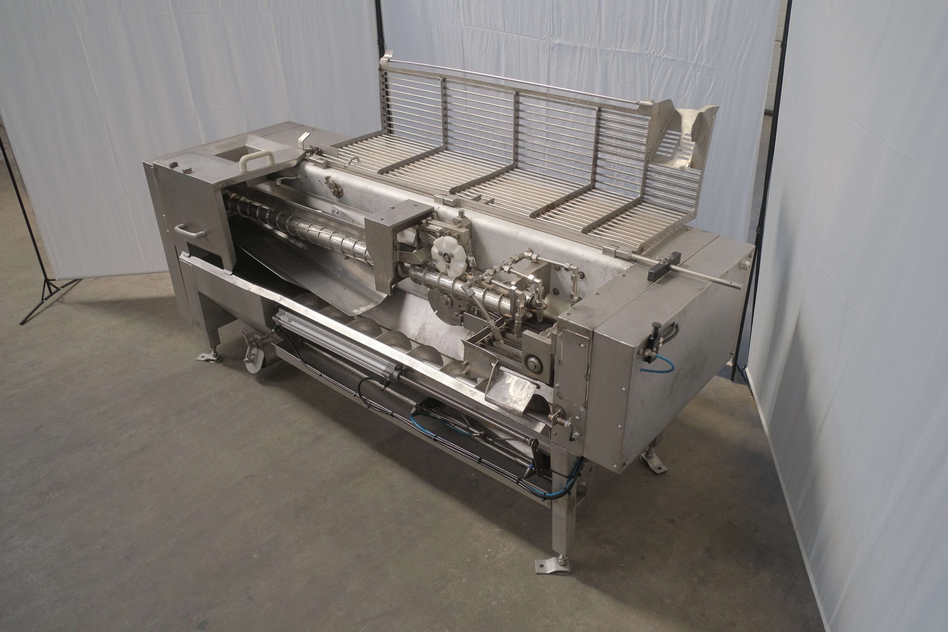 We have a Gizzard Harvester MG60/80P available. This machine is ideal for cleaning poultry gizzards, featuring an effective cleaning mechanism that removes contaminants and prepares the gizzards for further processing. Fully renewed and in excellent working condition, it ensures reliable performance.