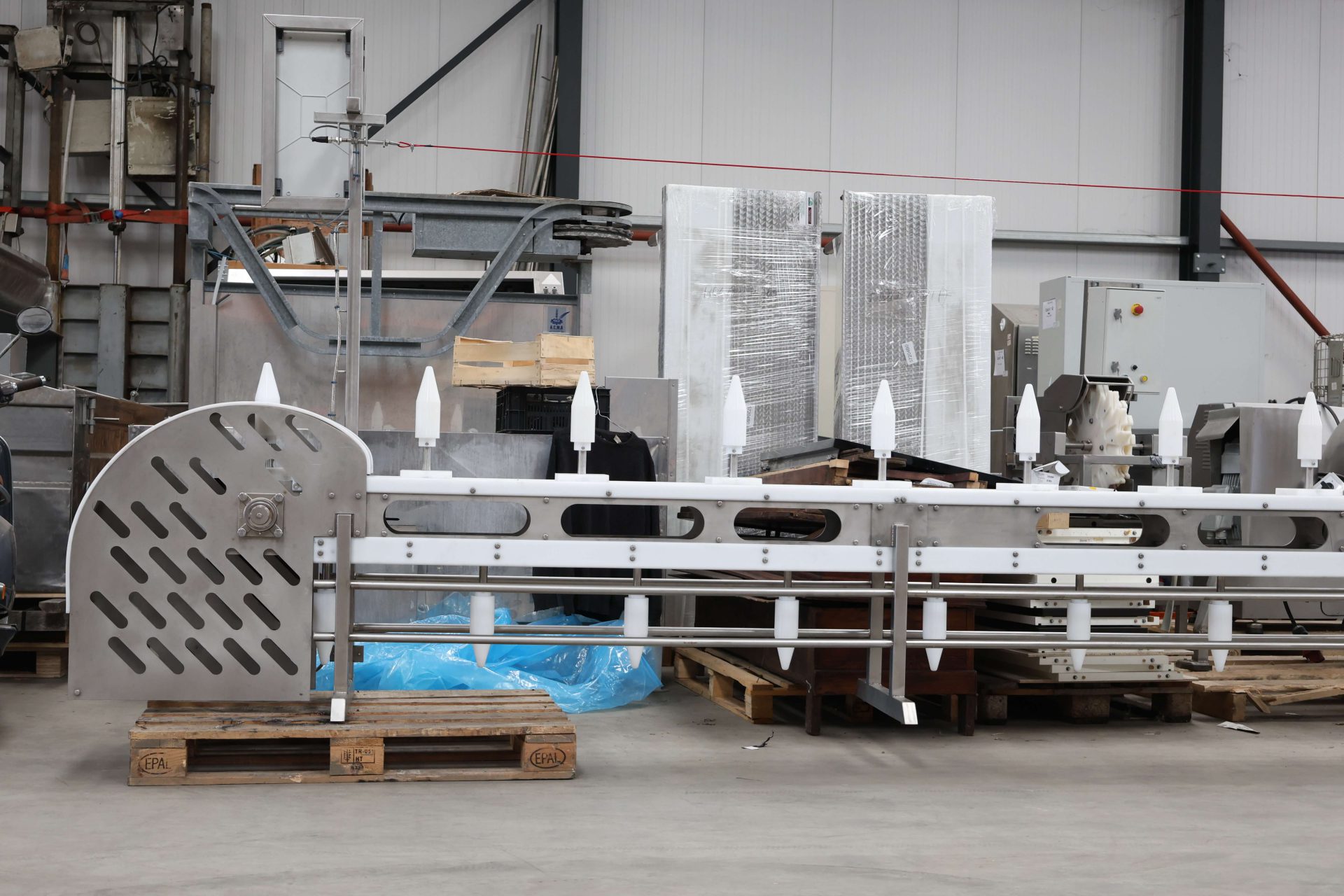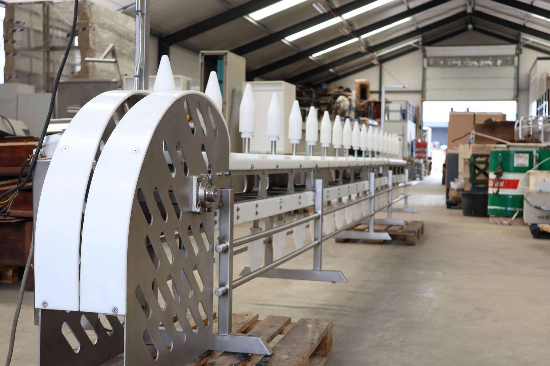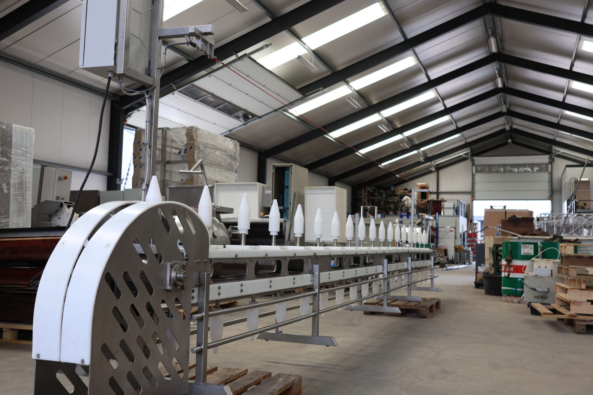 We offer a specialized cone line designed for precise cutting of whole poultry products. This system simplifies operators’ tasks by placing each poultry item into an individual cone. The optimized angle of the cones allows for accurate, waste-free cutting, ensuring efficient and clean processing.