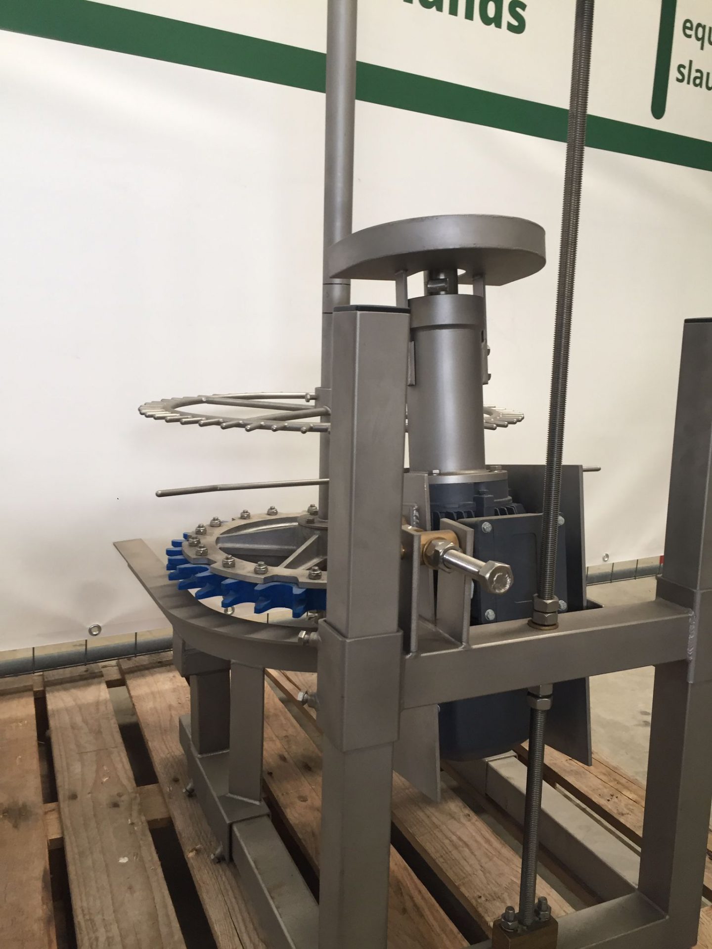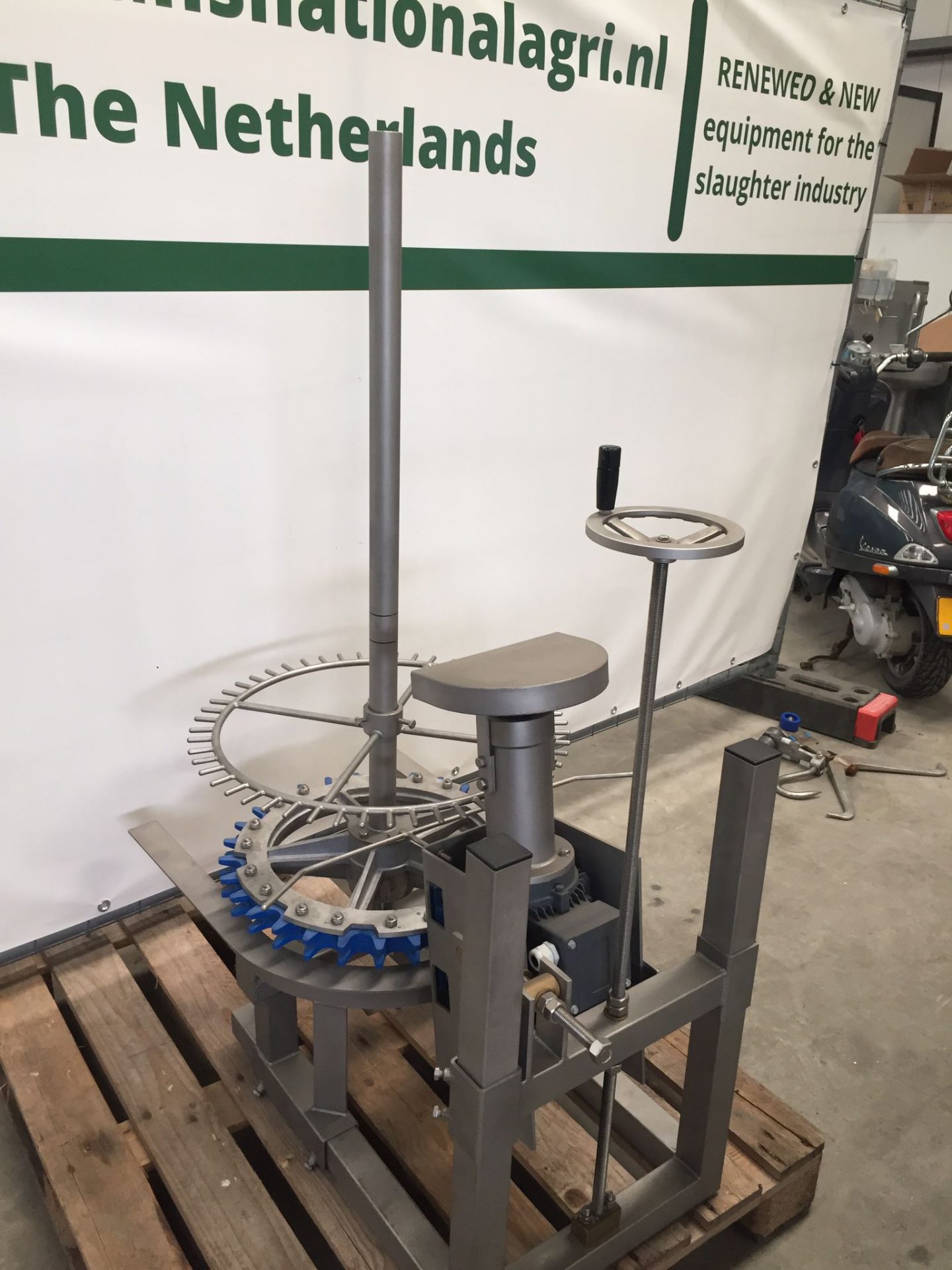 We offer a brand new automatic poultry hock cutter designed for seamless integration with an overhead conveyor system. This advanced cutter precisely removes the hocks as birds move along the conveyor. It slices the ankle joint and uses a revolving knife to ensure clean cuts, accommodating various bird types and weight ranges.
