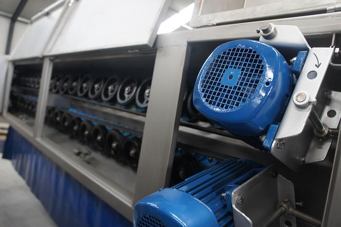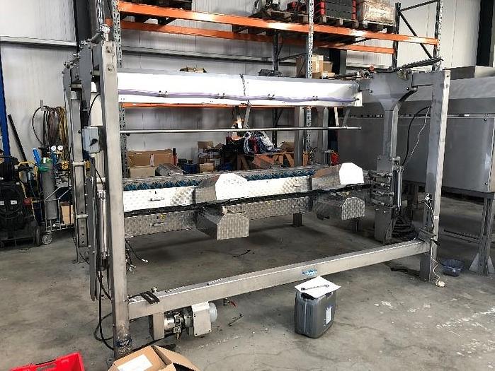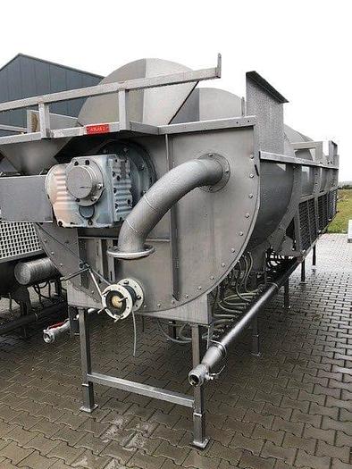 We have for sale a complete Linco poultry processing line with a capacity of 3.000 birds per hour. This comprehensive system includes an overhead conveyor with a new galvanized chain, a stunning bath with a control box, and a stainless steel bleeding trough.