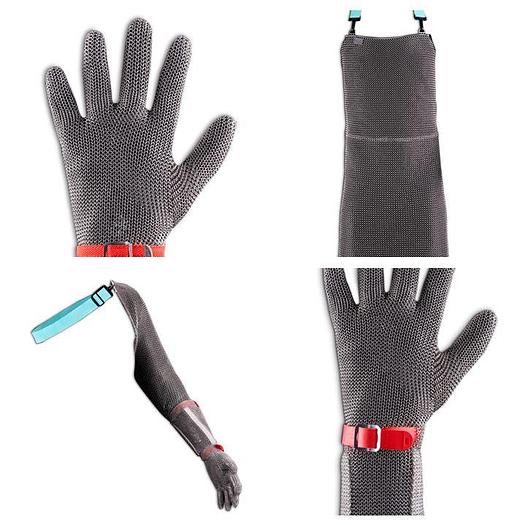 We offer a chainmail protective glove that guards your hands and forearms from cuts and punctures. This glove is designed for flexibility, ensuring safe handling of sharp objects. With a cuff and a perfect fit, it provides both comfort and maximum protection during work. We also have sleeves and aprons available for additional protection.