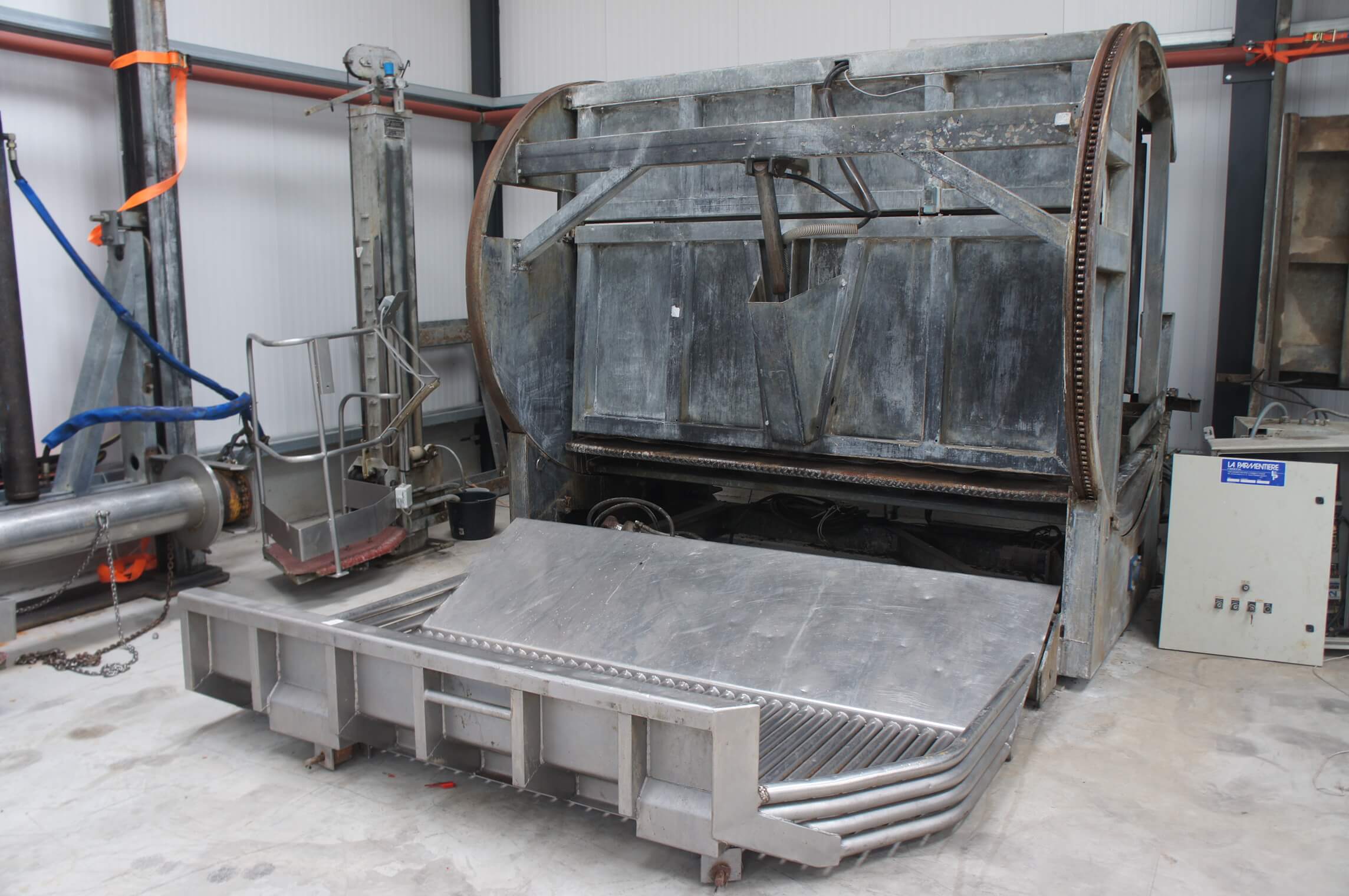 We offer the Facomia ritual killing box for slaughter lines, designed for efficiency and safety. This box rotates 180 degrees with the help of an engine, ensuring easy access to the animal’s neck for a precise and clean cut during slaughter. Perfect for halal and other ritual slaughtering methods.