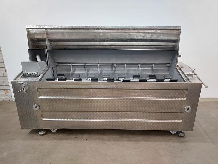 In the pictures you can find an example of 60 pig per hour slaugter line, featuring primarily new, high-quality European machinery. This includes a complete pig slaughter line with a maximum capacity of 15 pigs per hour, a cold room for 60 pigs, essential tools for efficient operation, and equipment for maintaining hygiene standards.
